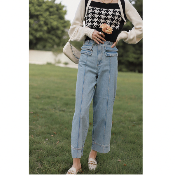 デニムのタイムレスでオールマイティ活躍するクロップドパンツです。リラックスムードなゆるシルエットのデニム。