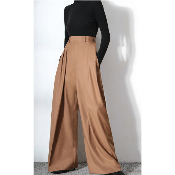 ウエストのタックでプリーツのようなラインが出て脚長効果も。