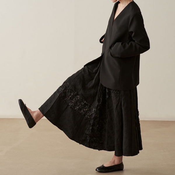 立体的なお花のレースを縦横にデザインしたフレアスカート。