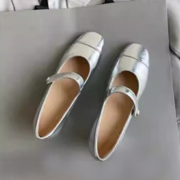 トレンドのシルバーカラーを使ったストラップパンプス。