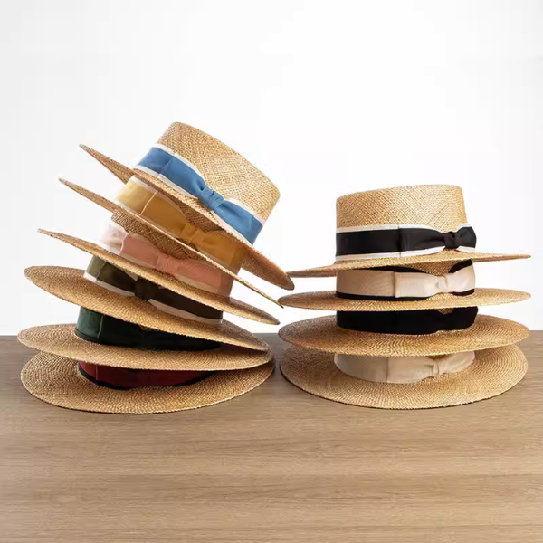 シンプルなリボン付きカンカン帽。合わせやすく、ちょっぴりレトロな雰囲気もプラスしてくれるので、スタイリングのアクセント使いに。