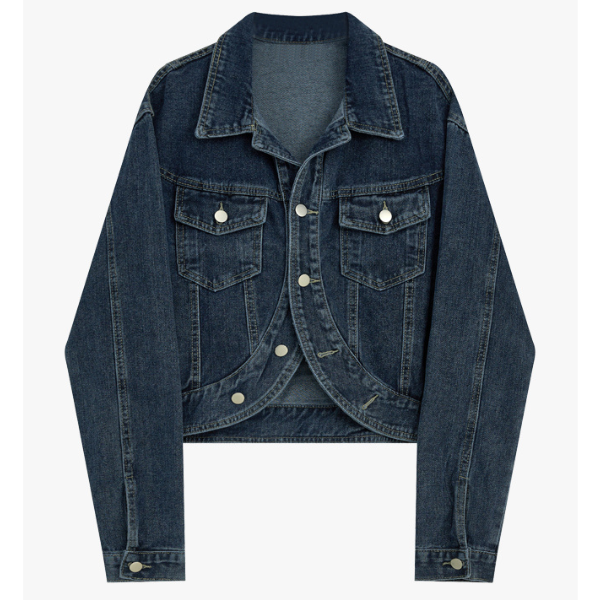 フロントの丸みを帯びたデザインが一際目を引くかわいさのあるデニムジャケット。