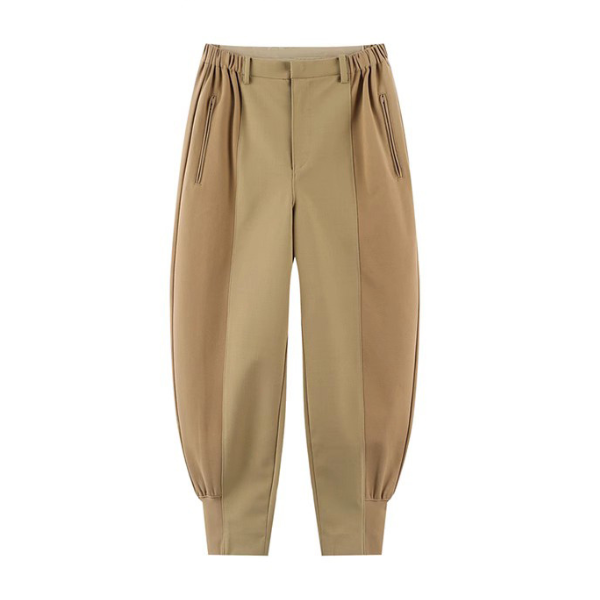 体のラインを拾わずないゆとりが心地良く、キュッと絞った足首のメリハリがスタイルアップ効果も。