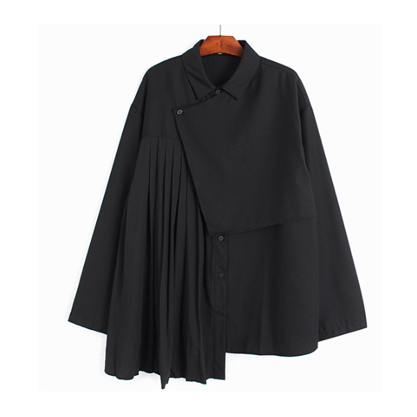 【2color】ラペルプリーツシャツ X-350