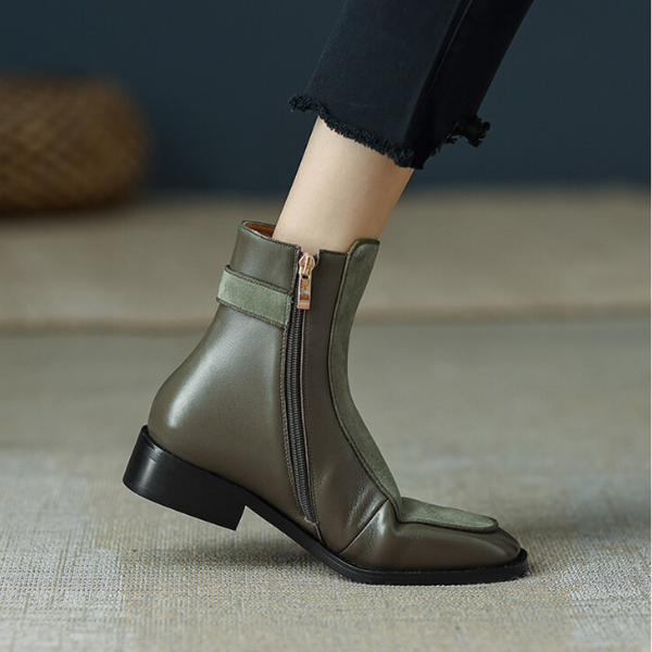 ヌバックとスムースレザーを組み合わせた、切り替えのデザインがおしゃれなショートブーツ。