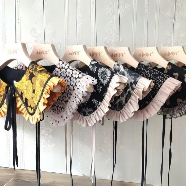 インパクトのあるさまざまな柄のジャガードがつけ襟になりました。