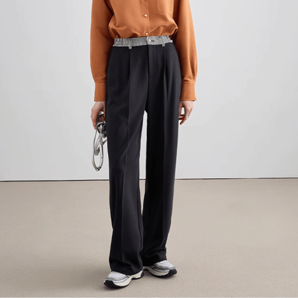 ベルトラインにシェパードチェックを使った切り替えのデザインがポイント。