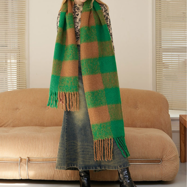 【3color】チェックパターンスーパーロングスカーフ X-453