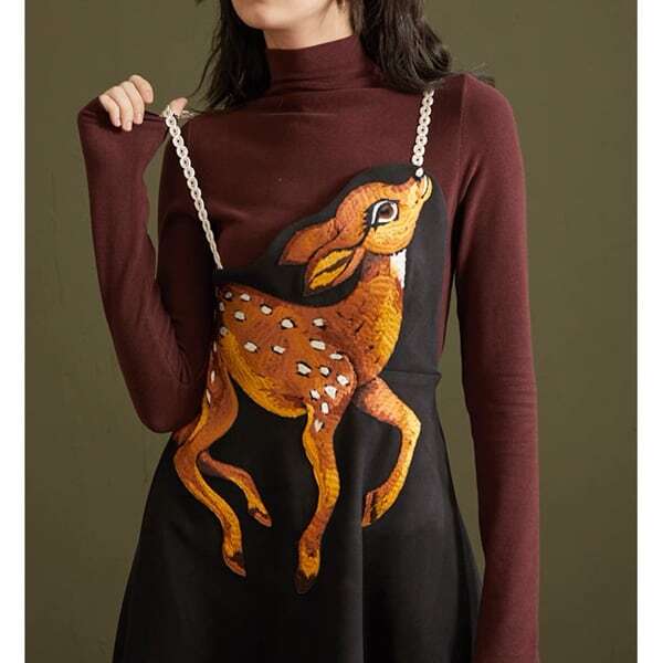 見た瞬間から心奪われるバンビ刺繍が可愛いサスペンダースカート。
