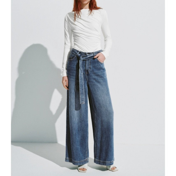 ウエストベルト付きワイドレッグデニムパンツ X-525