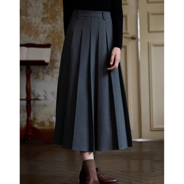 ハイウエストAラインプリーツロングスカート X-533