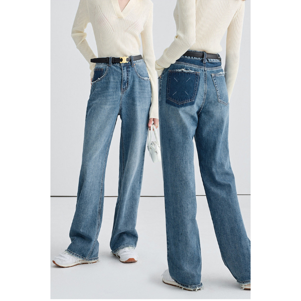 デニムブルーハイウエストワイドレッグジーンズ X-539