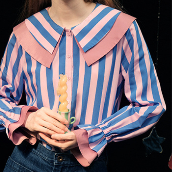 大胆なデザインが魅力のダブルカラーストライプルーズシャツ。