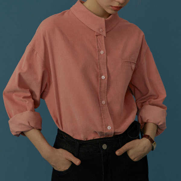 バックのデザインが特徴的でデイリーコーデに可愛さをプラスするローズピンクのコットンシャツ。