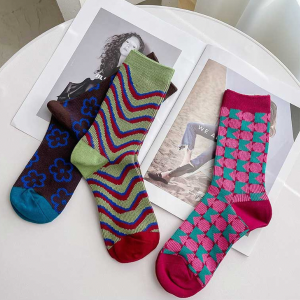 適な履き心地とカラフルなデザインが特徴のミッドチューブソックス。