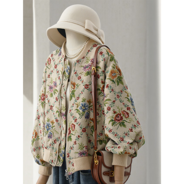 上品なゴブラン織りの花柄が印象的な珍しいブルゾン。
