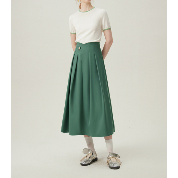【2color】ゴールドボタン付きハイウエストAラインスカート Z00094