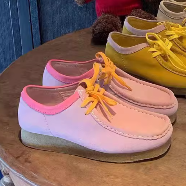 洗練されたデザインと快適な履き心地を兼ね備えたスクエアトゥワラビーシューズ。