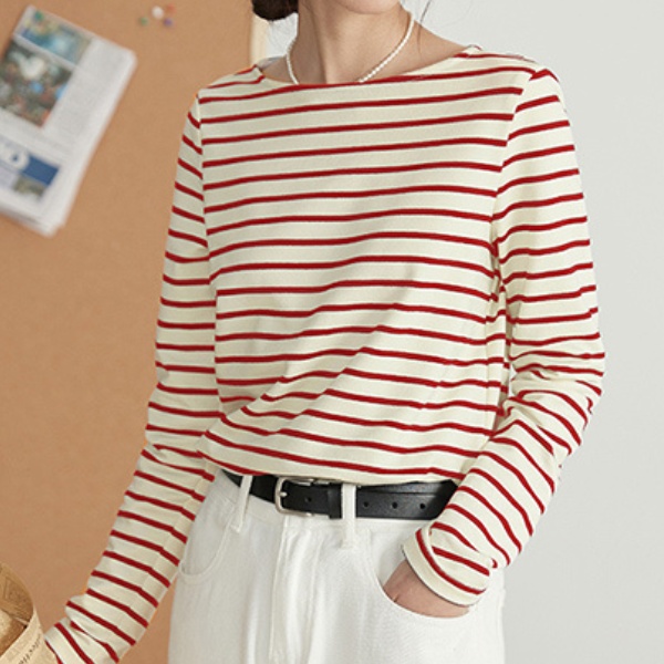 ストライプ柄がさりげなくおしゃれな印象を与えてくれるシンプルで使いやすいロングTシャツ。
