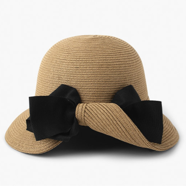 ブラックリボンがハット全体を引き締め、上品な印象を与えます。