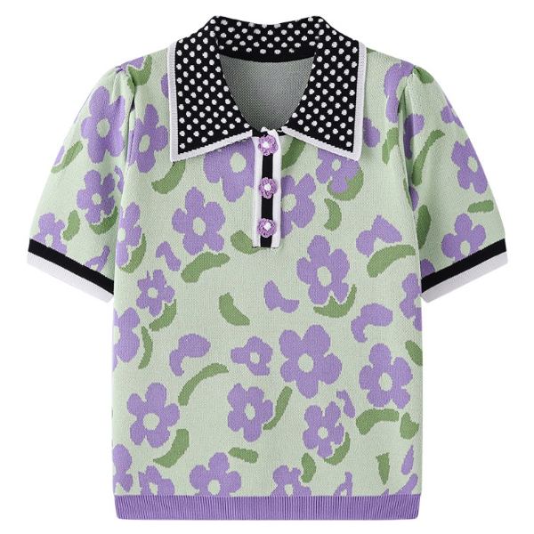 ドット柄×花柄半袖ポロシャツ Z00205