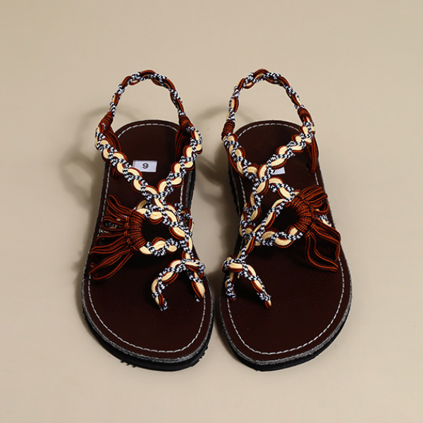 足元から夏の爽やかさを演出する、手織りデザインのフラットサンダル。