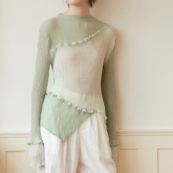 フリル付きミントグリーンシースルートップ Z00264
