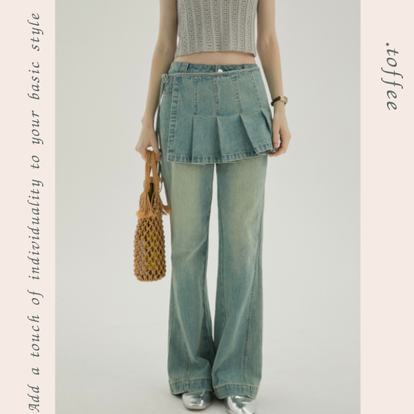 ダブルの魅力が詰まった、フェイクスカート&デニムパンツの2点セット。