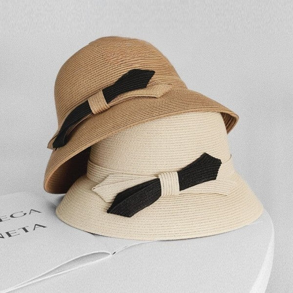 明るく華やかな印象を演出する、バイカラーリボンストローハット。