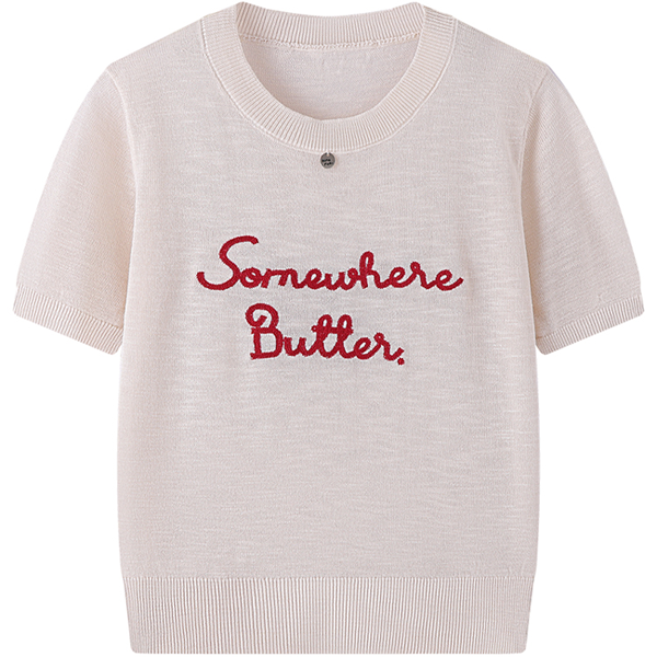 【7color】レター刺繍入りクルーネック半袖ニット Z00393