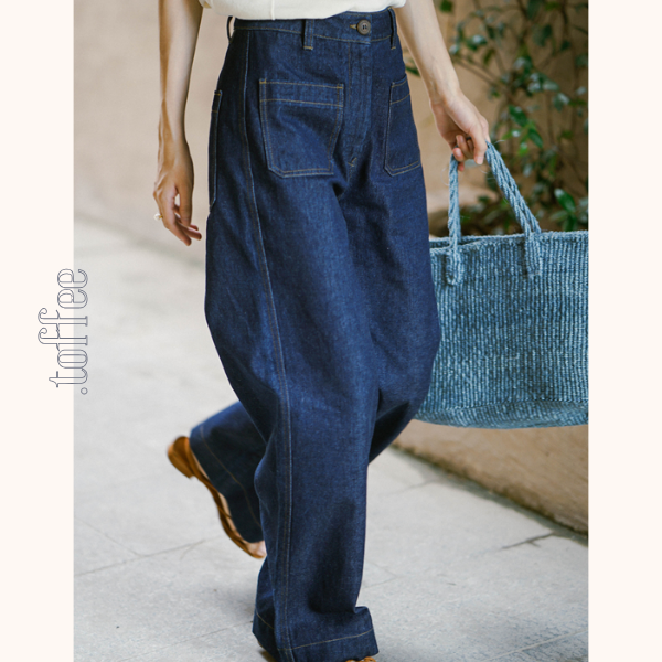 インディゴブルーワイドデニムパンツ Z00404