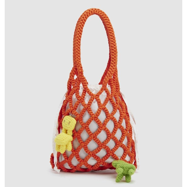 明るいオレンジ色が目を引くフィッシュネットショルダーバッグ。ビーチやフェスティバルなど夏のイベントにぴったりなアイテムで、シーズンムードを盛り上げてくれます。軽量で持ち運びも楽々なので、お出かけのお供に最適です。