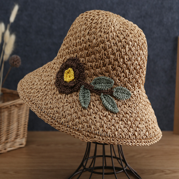 【2color】フラワーモチーフドーム型ストローハット Z00430