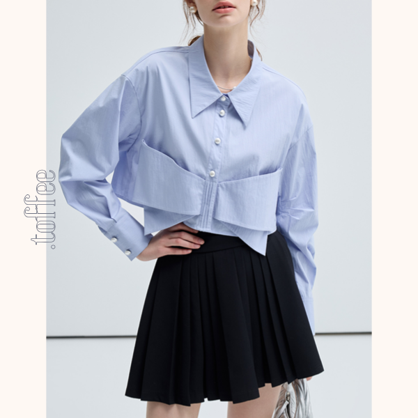 シンプルなブルーカラーが清楚な雰囲気を演出し、胸下の大きなリボンがインパクトを与える長袖シャツ。お仕事やデート、パーティーなど、様々なシーンで活躍するおしゃれな一枚です。あなたのファッションに一味違った魅力をプラスしてくれますよ♪