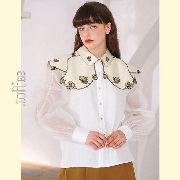 苺の植物画刺繍:ロマンティックケープ フェアリーブラウス C0161