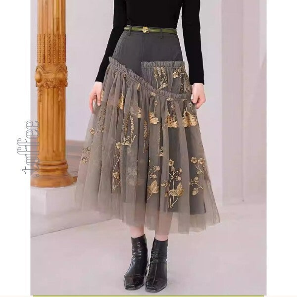 ニッチでクラシカルな植物画刺繍:フェアリーシアースカート C0163