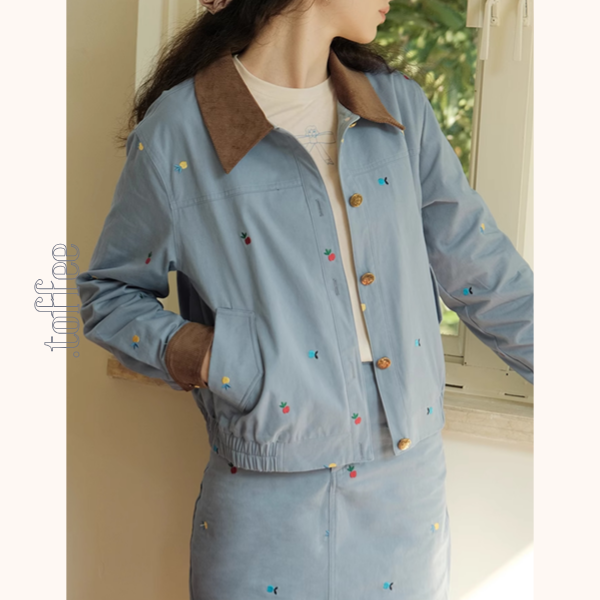 可愛らしいカラフルな刺繍がさり気なく施されたデニムジャケットとスカートのセットアップ。定番のブルーとキュートなピンクの2色を展開しています。セットアップなので、トップスとスカートの組み合わせが簡単で、スタイリングの幅が広がります。