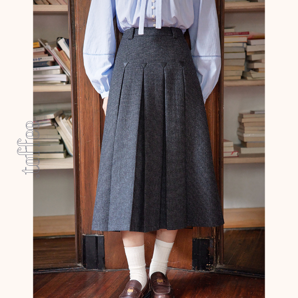 洗練された大人の雰囲気を纏う、ミモレ丈ウールプリーツスカート。 落ち着いたグレーの色合いとハイウエストデザインが魅力的で、スタイルアップを叶えてくれます。プリーツの入ったエレガントなシルエットは、どんなシーンでも活躍してくれますよ♡この一着をワードローブに加えて、洗練されたスタイルを楽しんでみてくださいね。