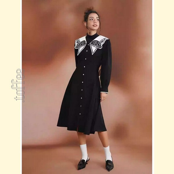 月明かりのバンビが佇む:オリエンタルと幻想が交差するプレッピーワンピース C0186