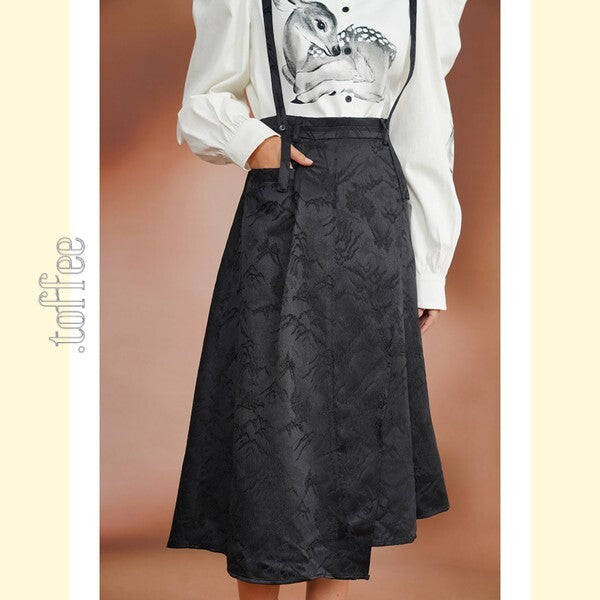 幻想的な水墨画ジャガードが織りなす:オリエンタルサスペンダースカート C0188