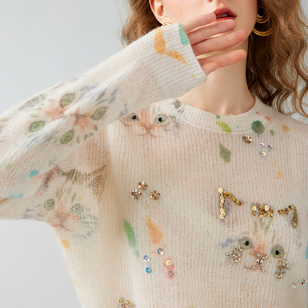 猫好きにはたまらない、愛らしいビジューディテールが魅力のビジュー&キャットニットプルオーバー。柔らかなパステルカラーにキャットモチーフとビジューが施されており、コーディネートに華やかさをプラスします。カジュアルなデニムスタイルにも、スカートと合わせたエレガントなコーディネートにもぴったり。デイリー使いはもちろん、ちょっとしたお出かけにも対応できるアイテムです。ユニークでありながら洗練されたデザインで、あなたの個性を引き立てます。
