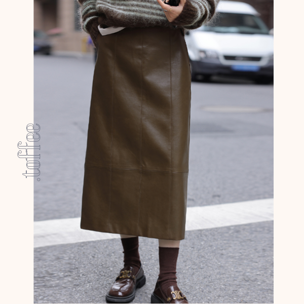 ミドル丈でエレガントに仕上げられたダークブラウンは、どんなトップスにも合わせやすく、一枚持っているだけで幅広いコーディネートが楽しめます。
