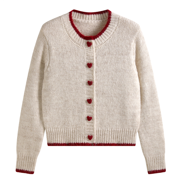 【3color】ハートボタンラウンドネックカーディガン 《Z00651》
