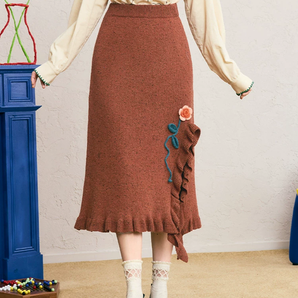 フラワー刺繍&フリルヘムロングスカート 《Z00686》