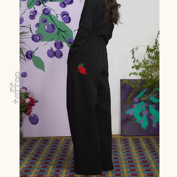 ストロベリー刺繍ブラックスウェットパンツ 《Z00698》