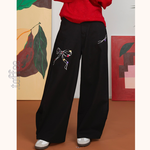 リボン刺繍ルーズストレートパンツ 《Z00700》
