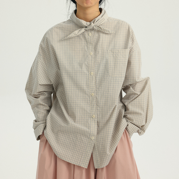 着回し力抜群のバンドカラーオーバーサイズシャツ。大きな襟が特徴で、フロントでくるっと結んでリボンのような形も作れるオシャレ仕様。シンプルなデザインなので、様々なボトムスやアクセサリーとの組み合わせを楽しめます。デイリーユースからオフィススタイルまで、幅広いシーンで活躍する一枚です♡