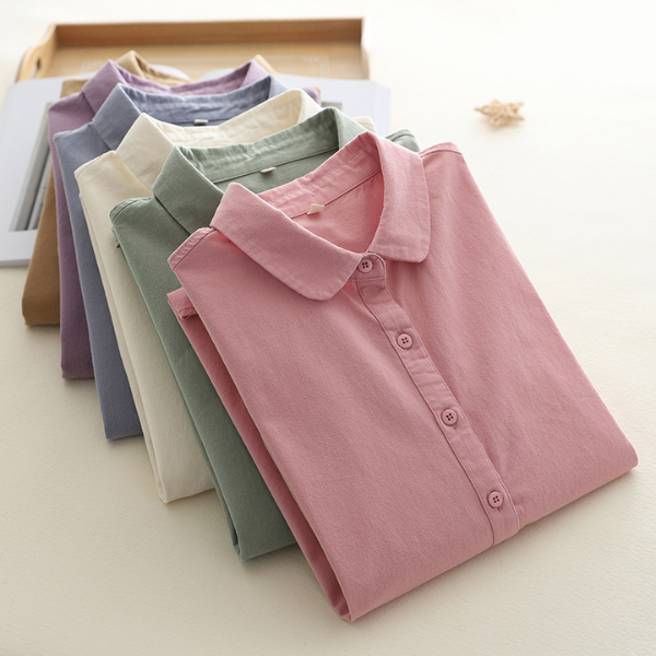 【6color】純綿ポロカラーロングスリーブシャツ 《Z00728》