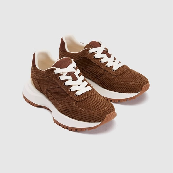 コーデュロイ素材が秋冬らしい雰囲気を醸し出す、厚底ローカットスニーカー。