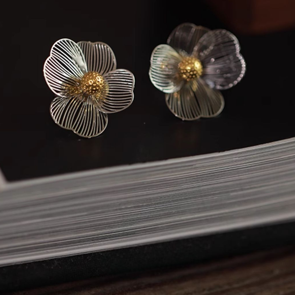 繊細なワイヤーで表現された、可憐なフラワーモチーフのピアス&イヤリング。
